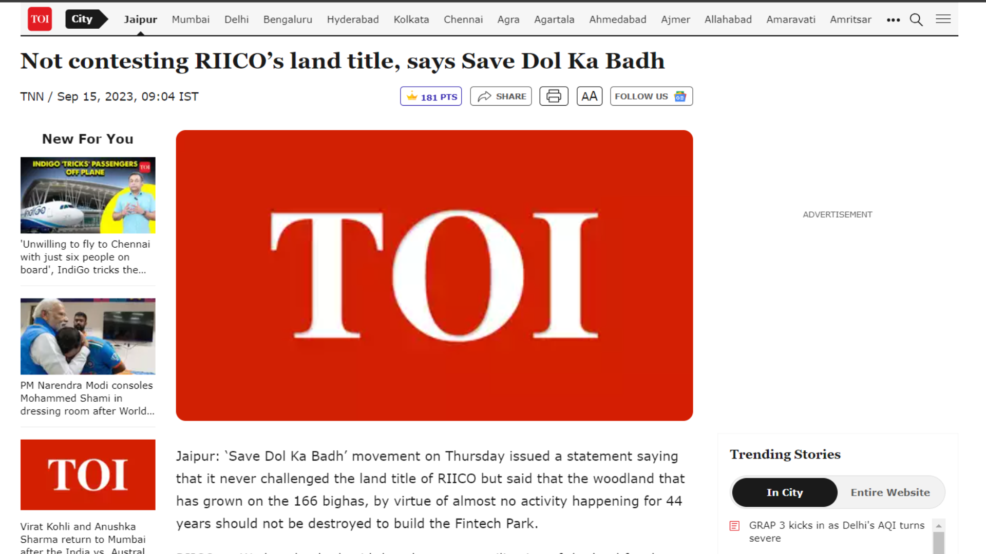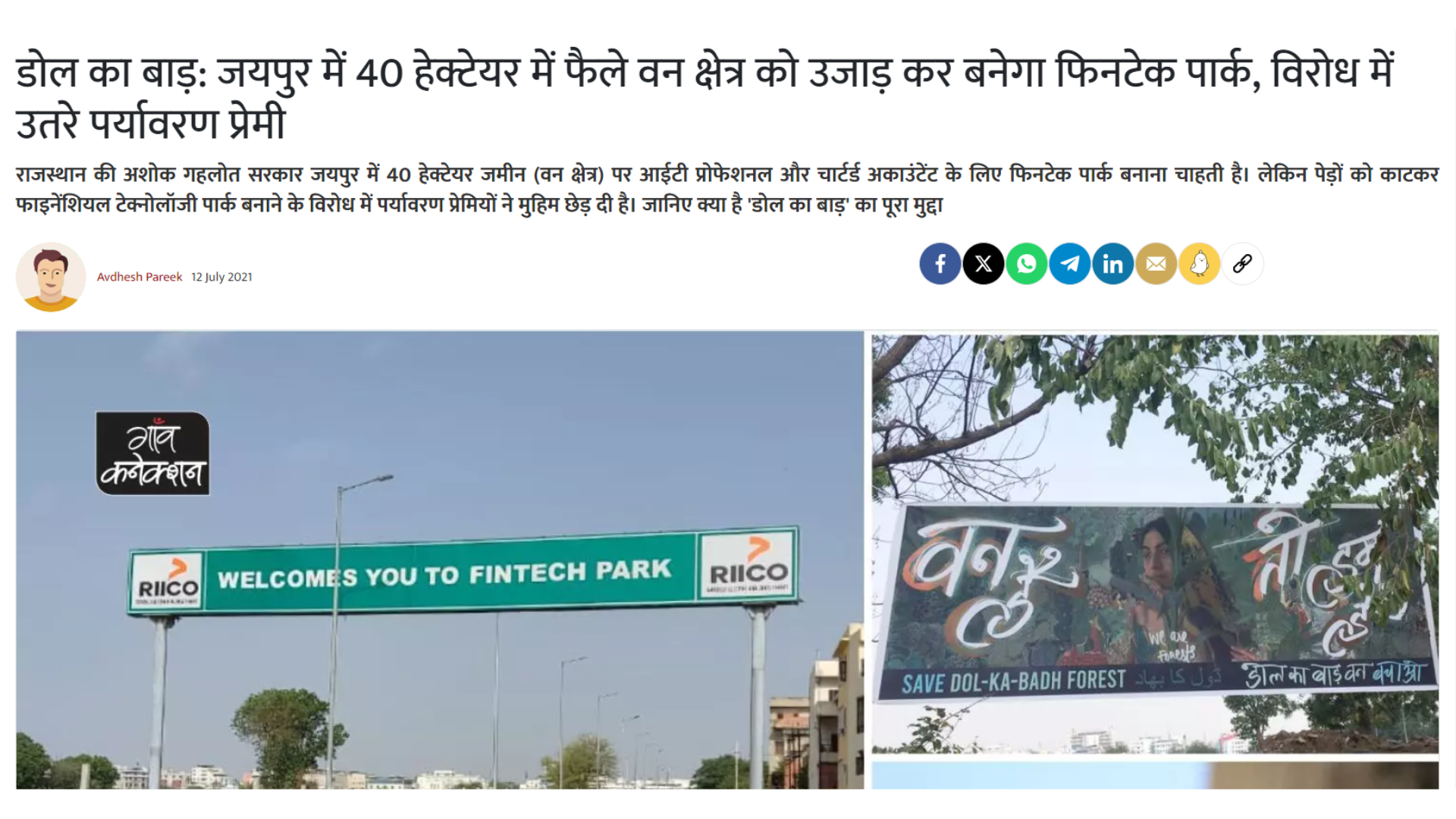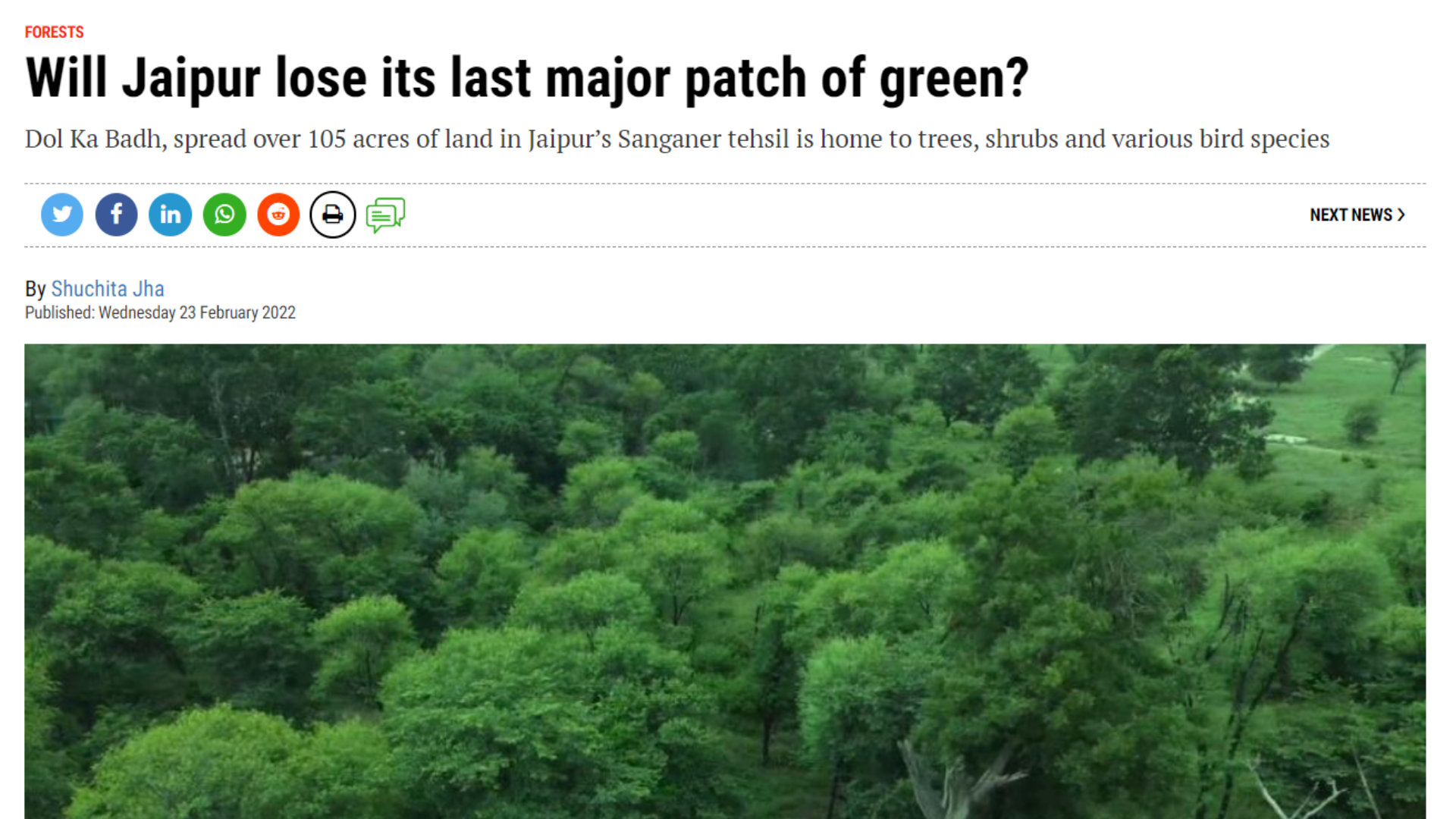 The citizens of Jaipur are raising their collective voice in a determined effort to rescue a precious 100-acre urban forest- Dol ka Badh from the impending transformation into a finance and tech park.